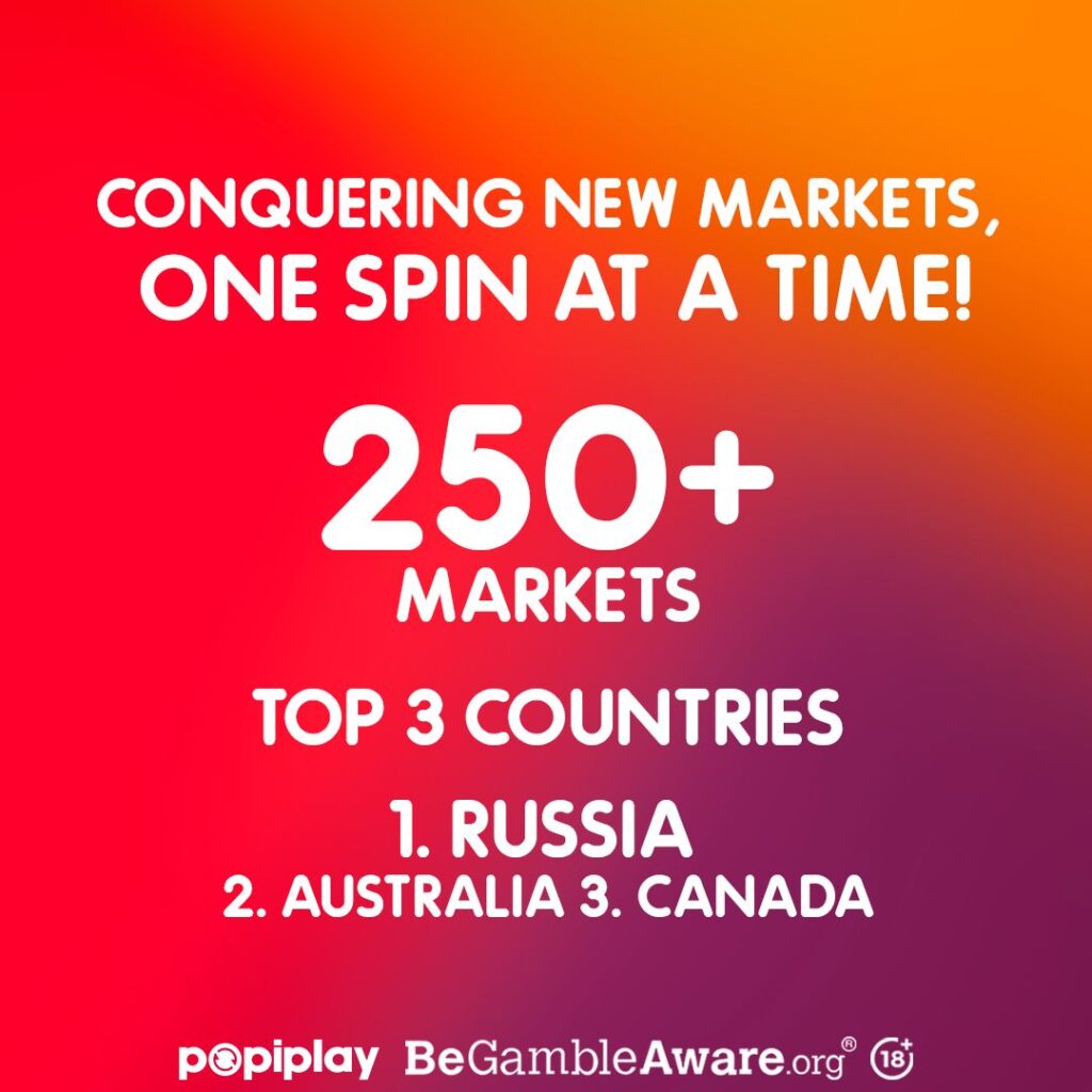 Popiplay’s expansion has not been limited to player numbers. In 2023, the studio conquered over 250 gaming markets, with Russia, Australia, and Canada emerging as top 3 countries. This global presence underscores our commitment to bringing exciting gaming experiences to every corner of the world.